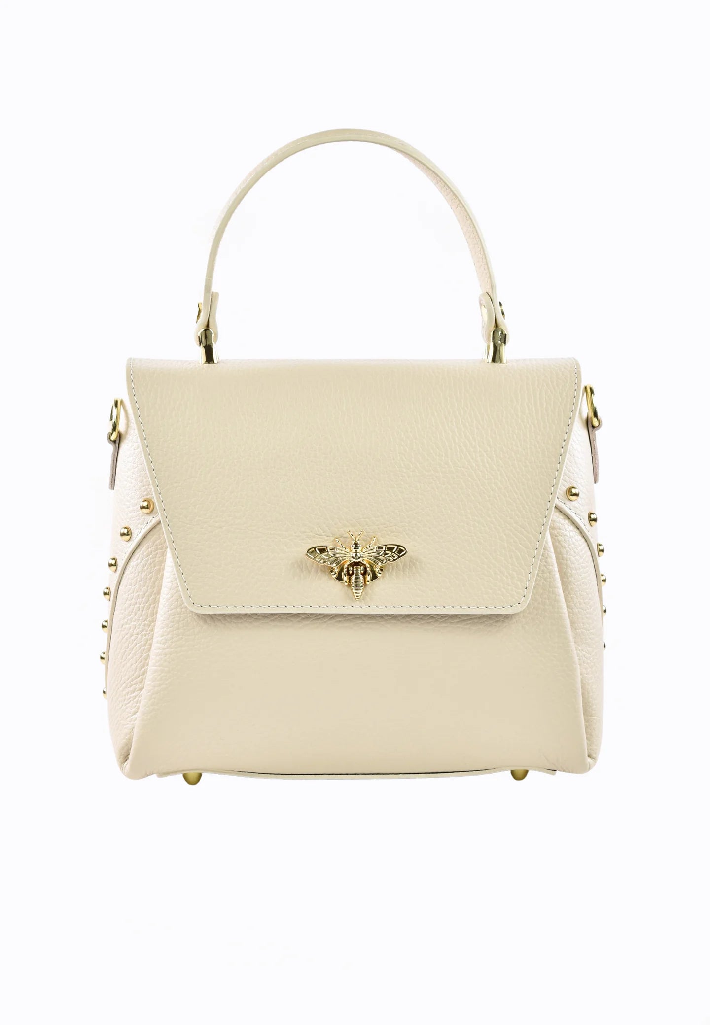 There is one main compartment, spacious enough for most needed items, such as: iPhone pro max, makeup, mirror, glasses, keys, wallet/cards, cash, AirPods, etc. Additionally, it comes with a large pocket in front where you could place your phone or wallet to grab it faster. The handbag is secured by the bee tail. It has an internal zipper as well as.