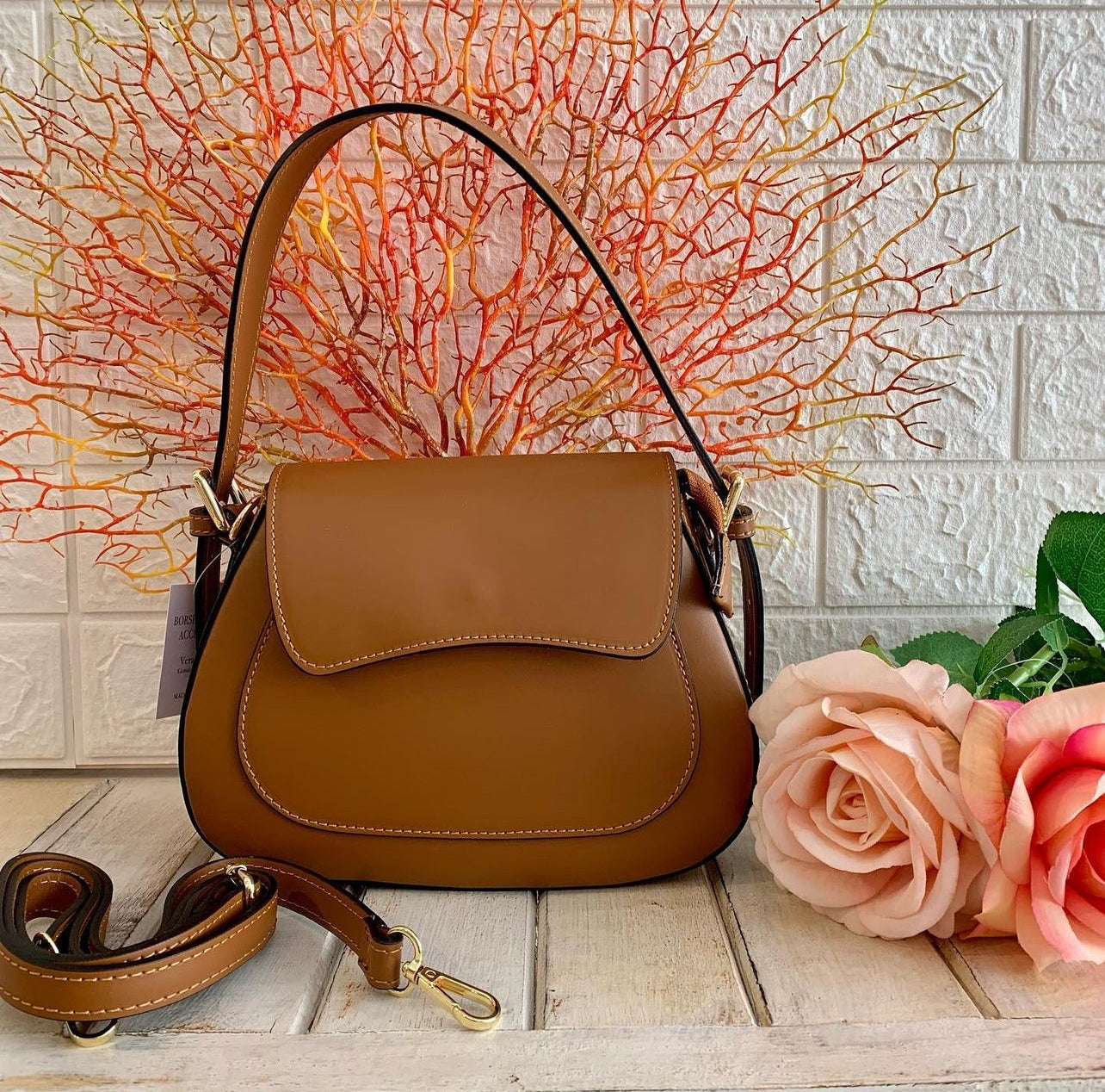 This beautiful bag is made in Florence-Italy from quality Italian leather. Soft and vibrant colors with golden finish details. You will easily feel the softness of the material as it is very pleasant to the touch. Very flexible and lightweight leather! The shape of this bag is unique as a local product very rare to find it in other retail store!