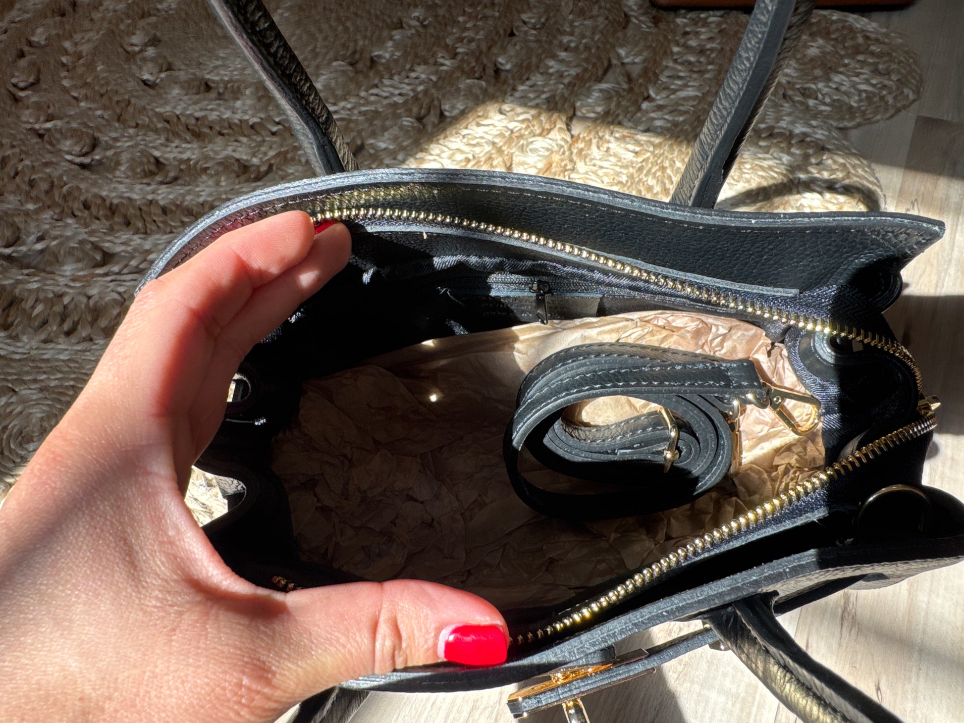 Italian leather handbag that can be hold just by the handle or crossbody with a leather strap (included)